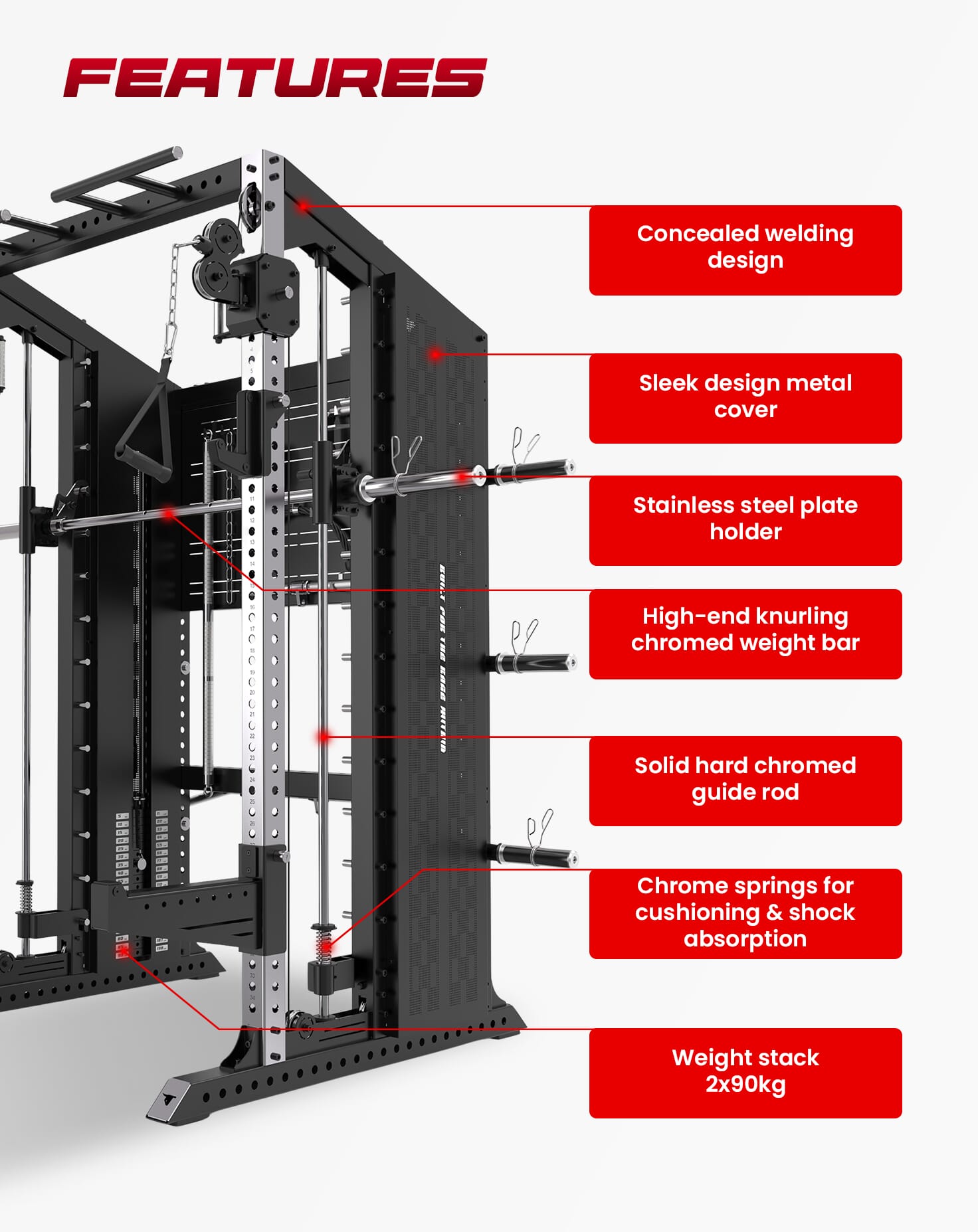 - Commercial-Grade All-in-One Smith Functional Trainer